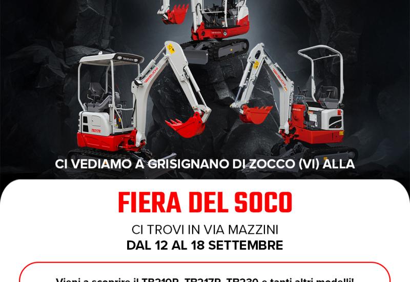 Grazie alla collaborazione con Tre R, concessionario ufficiale Takeuchi per la zona di Vicenza, le nostre macchine saranno esposte alla storica Fiera del Soco a Grisignano di Zocco (VI), dal 12 al 18 settembre 2025.