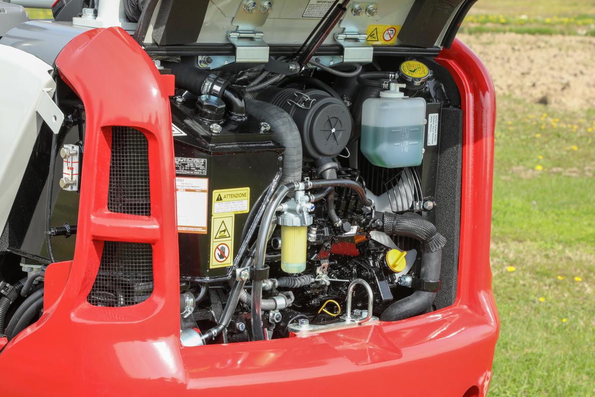Con tutti i comoinenti posizionati ad altezza d’uomo, l'operatore può facilmente accedere al filtro a doppio elemento, all'astina e al rabbocco dell'olio motore, alla vaschetta del liquido refrigerante, all'alternatore e al filtro linea pilota. Sul lato destro si trova il bocchettone di rifornimenti con l'indicatrore del pieno.