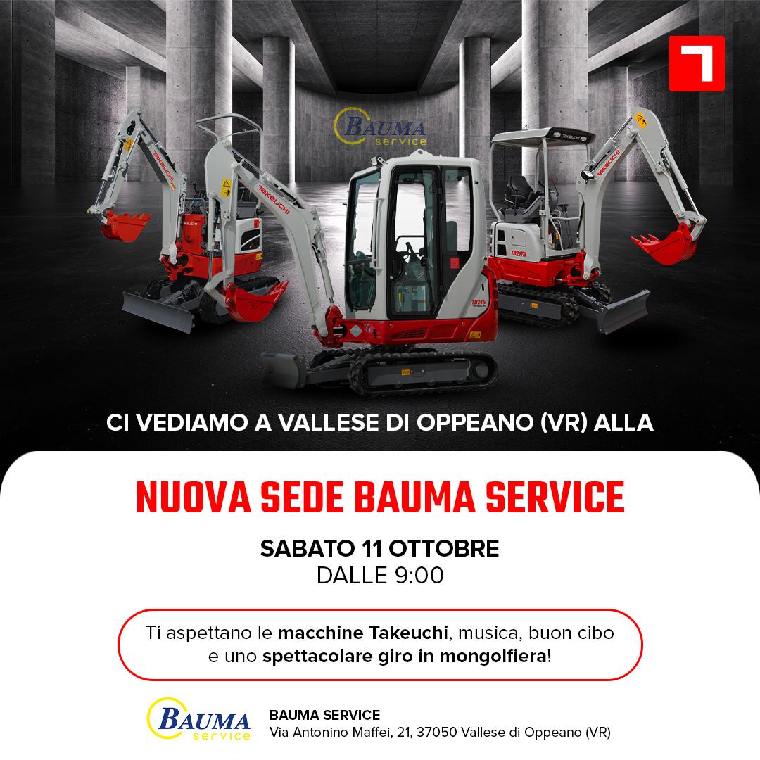 Sabato 11 ottobre, Bauma Service inaugura la sua nuova sede a Vallese di Oppeano in Via Antonino Maffei 21. Un traguardo importante per un’azienda che, da oltre vent’anni, è sinonimo di competenza, affidabilità e servizio nel settore delle macchine per il movimento terra.